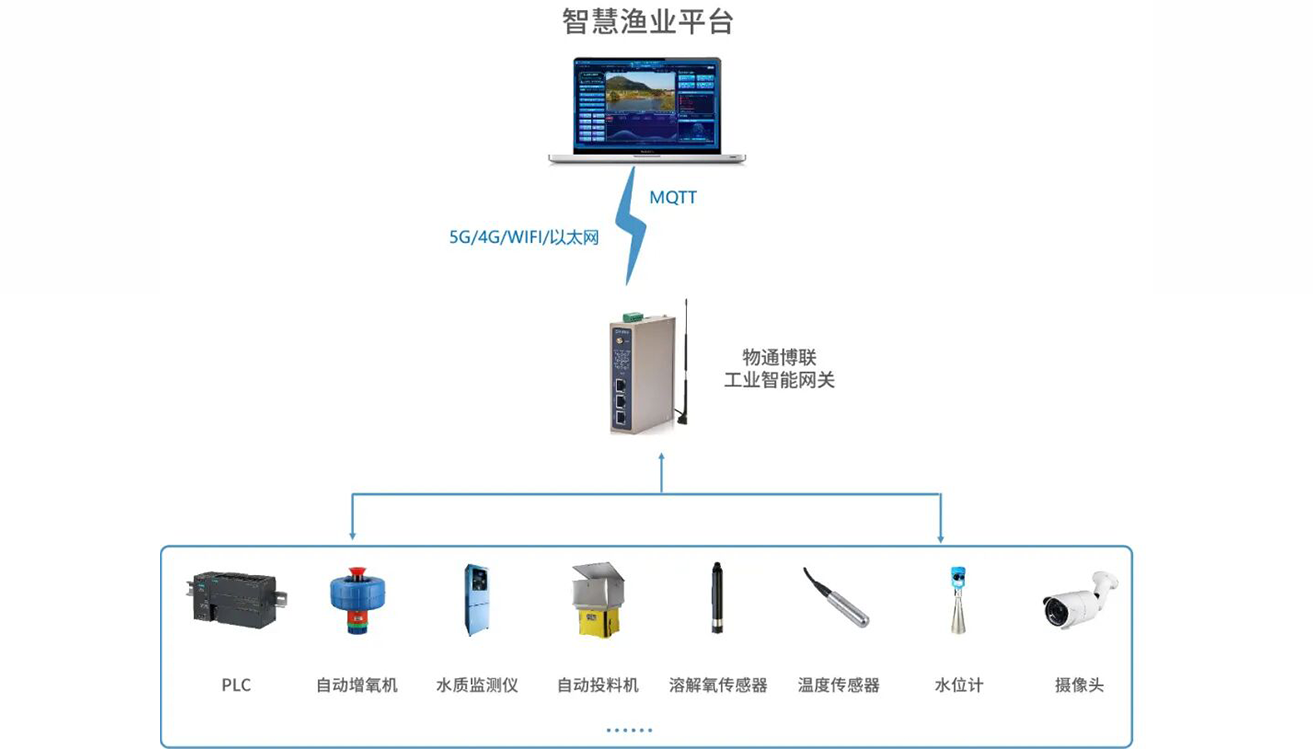 在水產養殖池塘或養殖箱內安裝各類水質監測傳感器,如溶氧傳感器、酸堿度傳感器、氨氮傳感器等,通過物通博聯的工業智能網關將采集到的水質數據實時傳輸至水產養殖水質監控平臺。平臺對數據進行實時分析和處理,當溶氧含量過低、酸堿度失衡或氨氮含量超標時及時發出預警。根據水質數據自動控制增氧設備、水質調節設備等,實現水質的遠程調節。同時,平臺具備養殖數據分析功能,為養殖戶提供決策支持。
