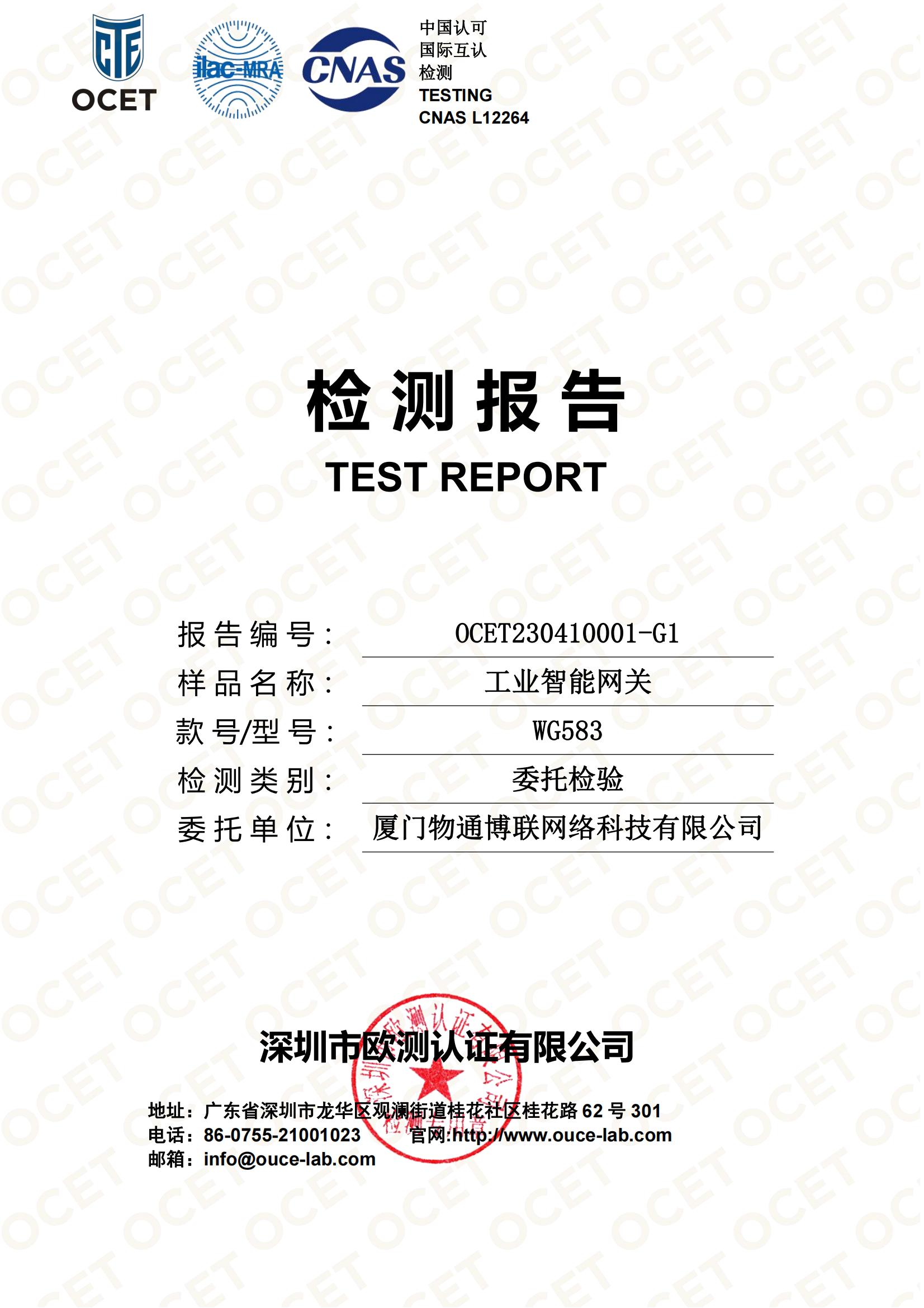 該檢測認證的通過,是對物通博聯工業智能網關產品的功能、質量、安全性、可靠性、穩定性的認可。
