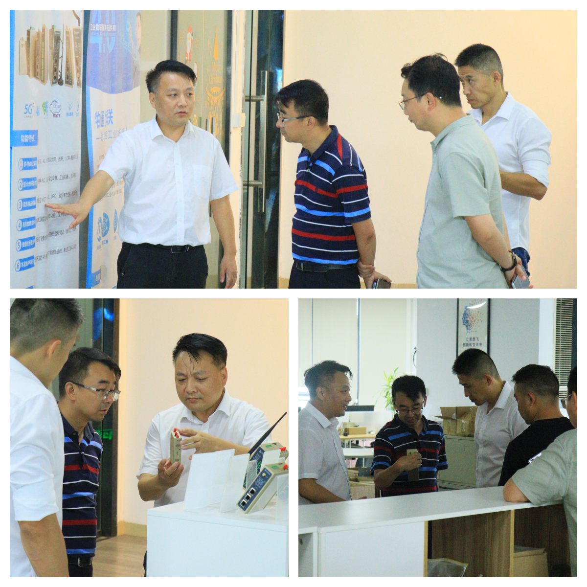 在參觀過程中,陳總向各位嘉賓詳細介紹了公司的戰略定位、產品特性、生產工藝以及市場前景等方面的情況。金牛區新經濟和科技局領導對物通博聯在物聯網、數字化等領域的創新成果表示了高度的贊賞。