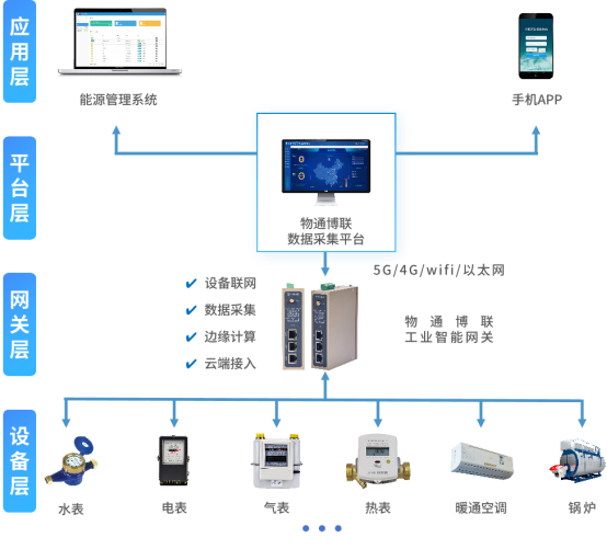 物通博聯(lián)依托物聯(lián)網(wǎng)、無線通訊、大數(shù)據(jù)、自動化控制等先進(jìn)技術(shù),打造了一套完整的能耗設(shè)備上云解決方案。