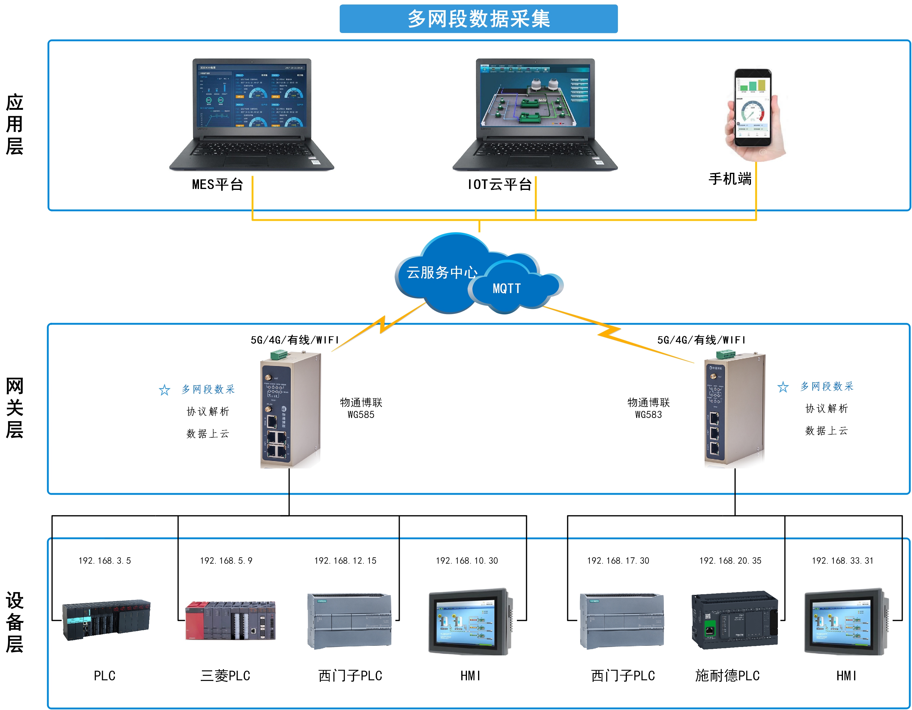 WC505網段隔離器適用于生產網絡對 PLC、HMI、CNC、DCS、MES等網絡通訊和數據采集,兼有跨網段隔離和IP轉換的功能。