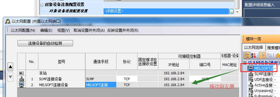 2、對(duì)象設(shè)備連接配置設(shè)置中新增“MELSOFT連接設(shè)備”通訊方式。