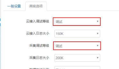 日志設置路徑:網關---云服務中心---云接入調試等級與采集調試等級.為了保證網關快速高效采集,調試完畢后請務必將網關采集日志和云接入日志等級調整為信息。