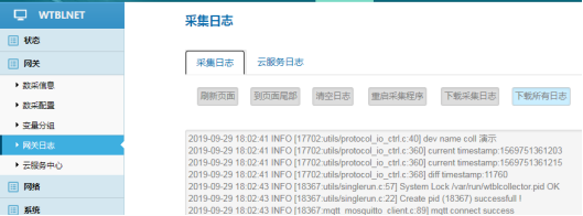 采集日志用于診斷網關采集現場設備的通信情況和報文收發情況、以及遠程配置交互等情況。
