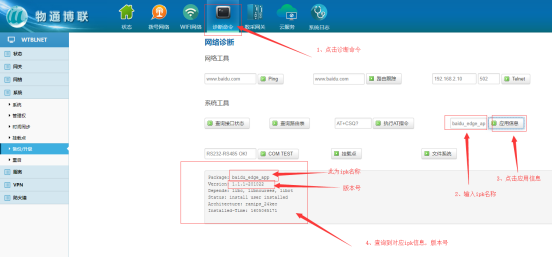 進入系統→備份升級,輸入升級密碼:wtbl1234567890@WideIOT.com ,然后選擇對應要升級的ipk,最后點擊安裝,進度條顯示100%即完成操作。