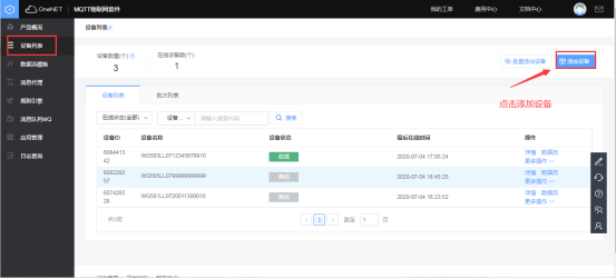在目錄欄中選擇“設(shè)備列表”,然后點(diǎn)擊添加設(shè)備