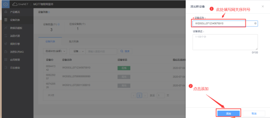 2、平臺(tái)上添加網(wǎng)關(guān)(設(shè)備)