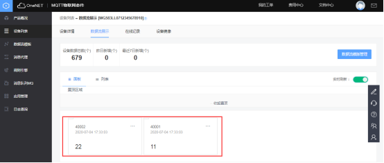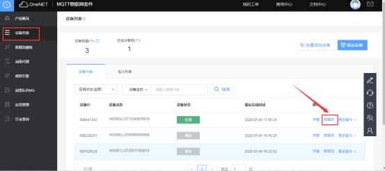 可進(jìn)入OneNET平臺(tái)的對(duì)應(yīng)產(chǎn)品中獲取網(wǎng)關(guān)云服務(wù)中心所需要填寫的ID和KEY。