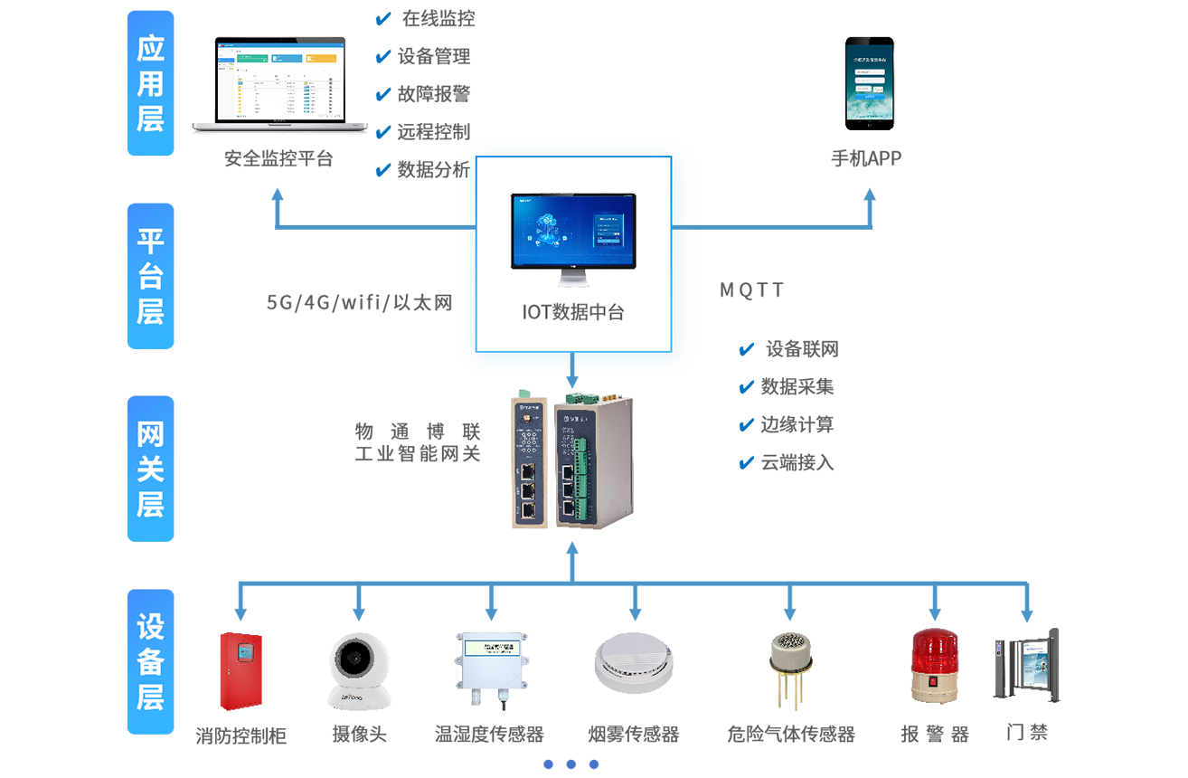 物通博聯(lián)通過對生產(chǎn)設備、傳感器、攝像頭、消防設備、安防設備等設備進行聯(lián)網(wǎng)和數(shù)據(jù)采集,將視頻監(jiān)控、人員行為、設備狀態(tài)等各類數(shù)據(jù)進行統(tǒng)一調(diào)度和應用,實時監(jiān)管工廠環(huán)境風險、人員行為不規(guī)范、安全著裝及車輛人員闖入等問題,并自動預警、上報、聯(lián)動應急指揮,有效解決傳統(tǒng)監(jiān)管難度大、人工排查易疏漏、事前預防能力差和響應慢等痛點,構(gòu)建工廠智慧安監(jiān)解決方案,減少安全事故的發(fā)生。