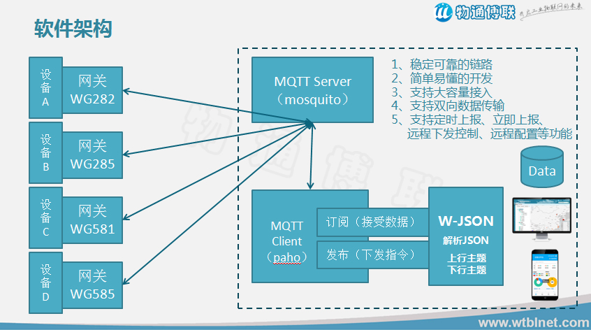 MQTT作為標準物聯網協議是個設備和云平臺的連接,穩定可靠。所以物通博聯的網關都支持MQTT協議。 采用物通博聯