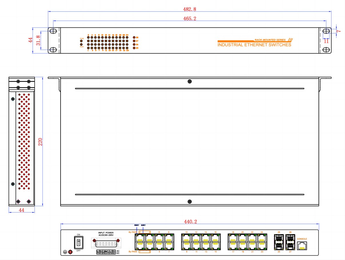 外形尺寸 | 寬×高×深:482.8×44×220mm |