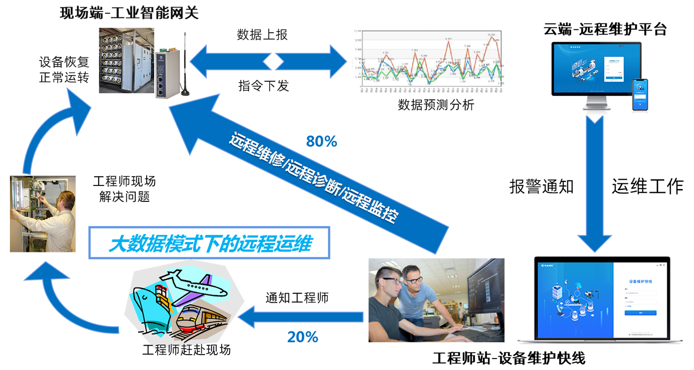 工程師可隨時隨地遠程到現場設備、一鍵式快速維護,減少工程師出差頻率,提高工作效率