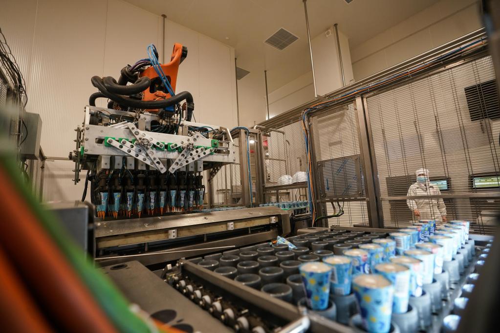 位于江蘇蘇州太倉的聯(lián)合利華和路雪生產(chǎn)基地,于2021年9月獲評全球“燈塔工廠”,成為當?shù)?ldquo;智能制造”的標桿。工廠里,機器人正將產(chǎn)品轉(zhuǎn)移到速凍隧道。新華社記者 季春鵬 攝