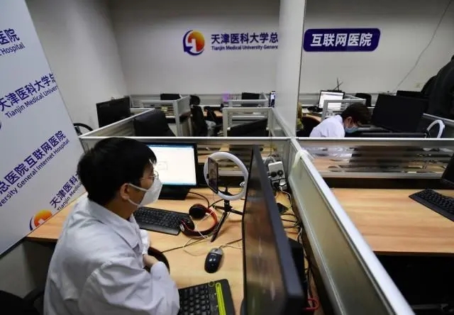 借由數字技術,天津醫科大學總醫院互聯網醫院開通“互聯網門診”服務,醫生用手機視頻進行線上問診。 新華社記者 李然 攝
