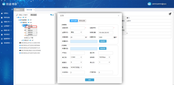 登錄物通博聯·設備云平臺(https://iot.WideIOT.com/),進入“我的設備”編輯模式,添加節點、設備與機型信息。