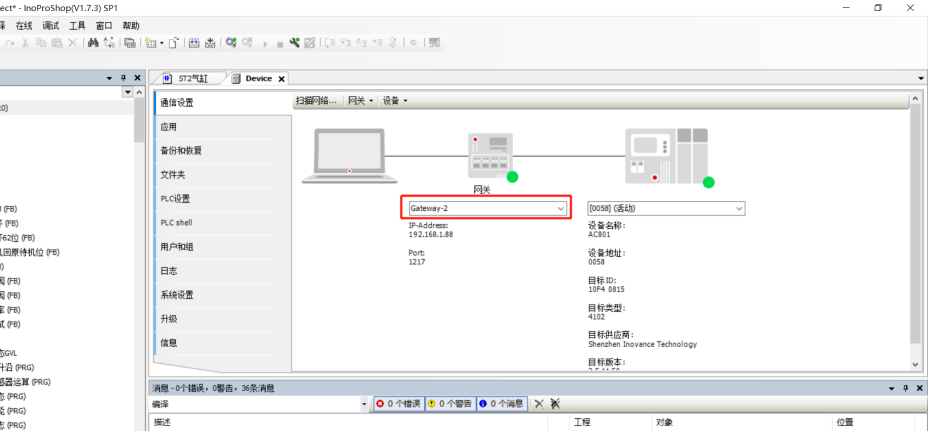 1、建立通道后,打開InoProShop ,根據連接的AM600型號全稱,選擇工程型號。