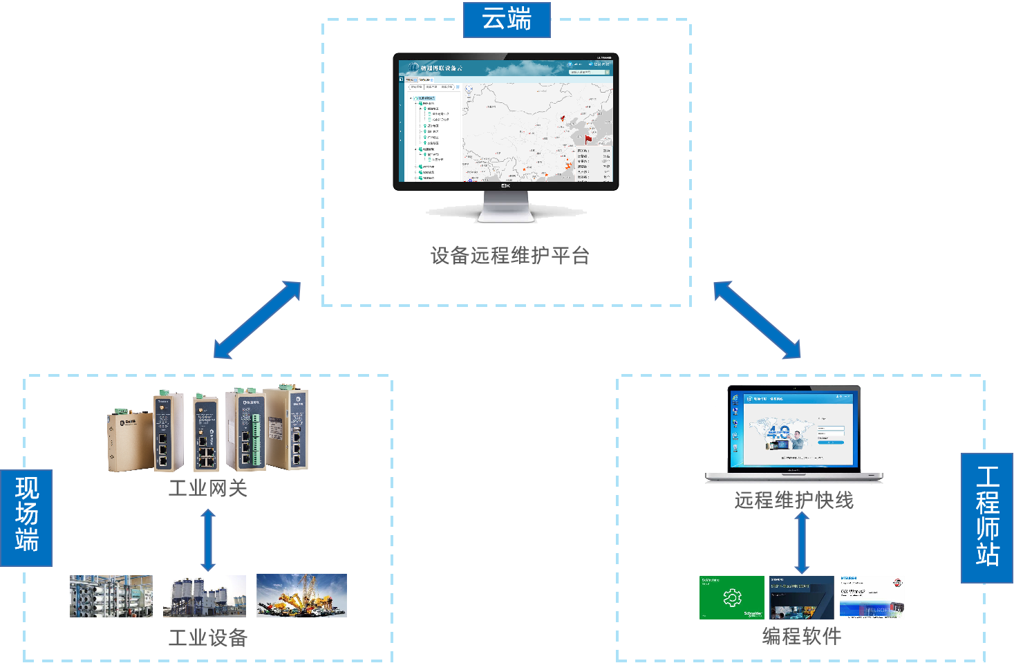 物通博聯針對裝備制造商客戶,提供設備遠程維護管理系統,實現設備智能化升級,通過采集分布在全球各地的設備數據、運行狀態上傳到物通博聯設備遠程運維管理平臺,實現遠程管理,遠程監控,遠程運維,數據分析等,提高維護效率;另外還可以利用物通博聯設備維護快線軟件,為工程師搭建一條通往遠端設備現場的安全數據通道,實現對現場設備的遠程配置、遠程診斷、遠程調試和遠程升級程序。通過物通博聯設備維護系統,可以提高裝備制造商的運營服務能力、產品質量和創新能力。