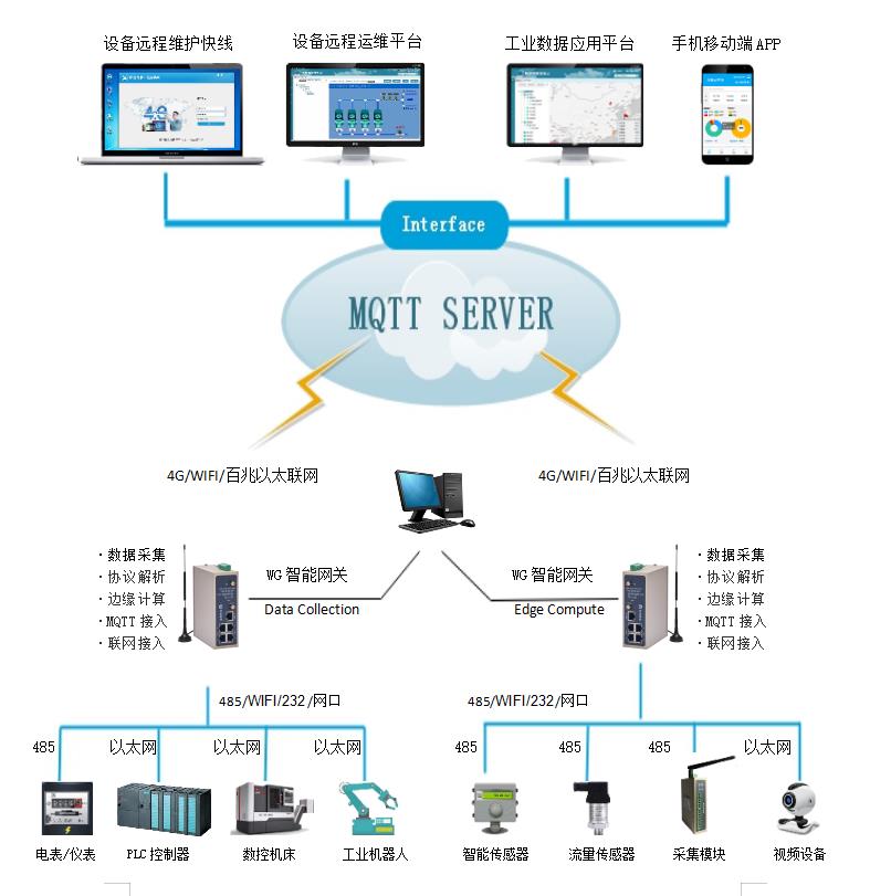 在硬件方面,借助于網關、終端等物聯網設備將分散在各地的工廠與設備聯網組網,可以實時采集各種儀器儀表的信息,以便于隨時監測設備的工作狀態。