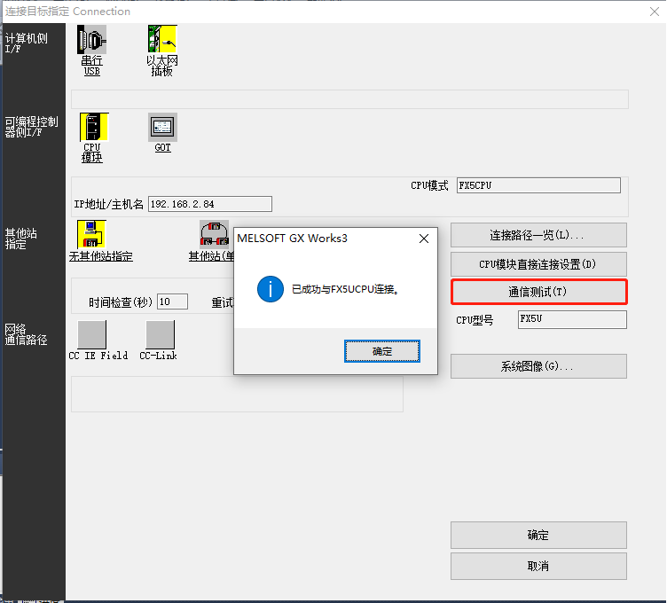 2、打開MELSOFT GX Works3,選擇控制器系列,設置“其他連接方式”通訊。
