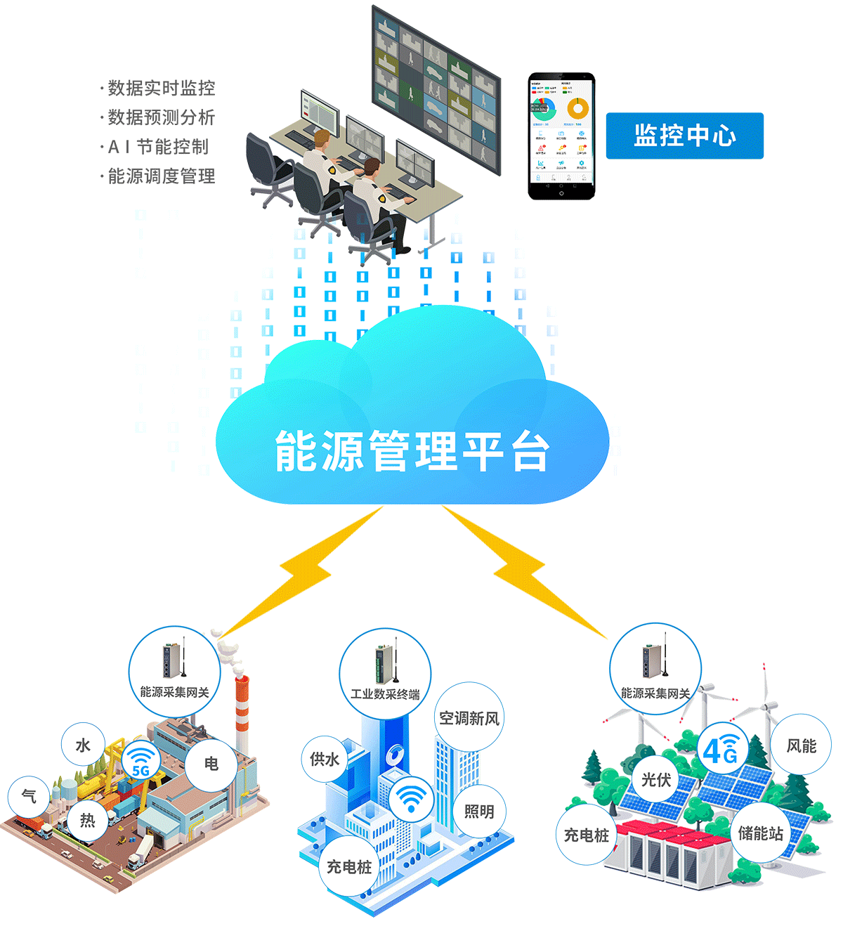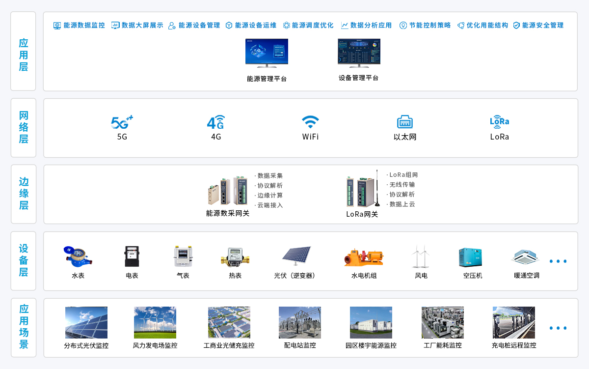 適用于工廠、園區(qū)、小區(qū)、電力、樓宇、公共設(shè)施等多種用能場(chǎng)景。